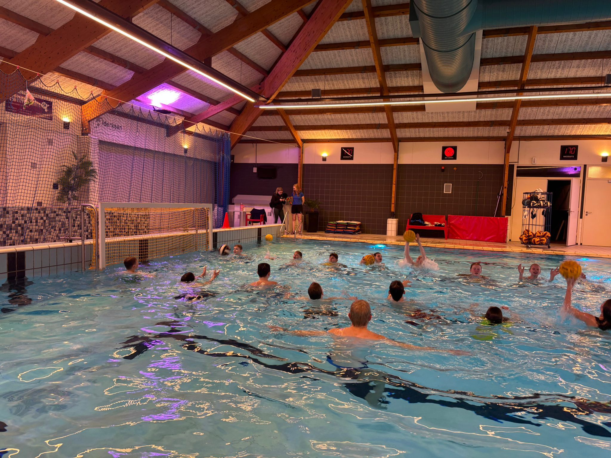 De trainers benadrukten dat waterpolo een intensieve en fysieke teamsport is die inzet, techniek en samenwerking vereist. Na diverse technische oefeningen volgde een oefenwedstrijd waarin de leerlingen het geleerde direct konden toepassen. Hierbij werd zichtbaar dat meerdere deelnemers de instructies goed hadden opgepakt en zich vaardig door het water bewogen. De clinic werd afgesloten met een estafette, waarin snelheid en teamwork centraal stonden. Als ontspannende afsluiting mochten de leerlingen nog gebruikmaken van de glijbaan. Na het omkleden keerden de leerlingen huiswaarts om te genieten van een welverdiende vakantie. De sportieve middag kan worden beschouwd als een geslaagde kennismaking met de waterpolosport.