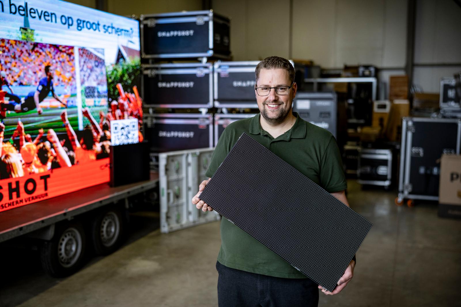 De ledschermen van Snappshot-LED zijn op verschillende locaties en bij uiteenlopende evenementen in te zetten. Denk aan jubilea, festivals, open dagen of beurzen. “Of wat dacht je van het WK-voetbal?” blikt Marc alvast enthousiast vooruit. “Wat is er nu mooier dan samen met vrienden op een terras voetbal kijken, een hapje en drankje erbij. Dat beleef je samen. Het allermooiste is natuurlijk als Oranje wint. Dan voelt het toch een beetje alsof je de Staatsloterij hebt gewonnen.”