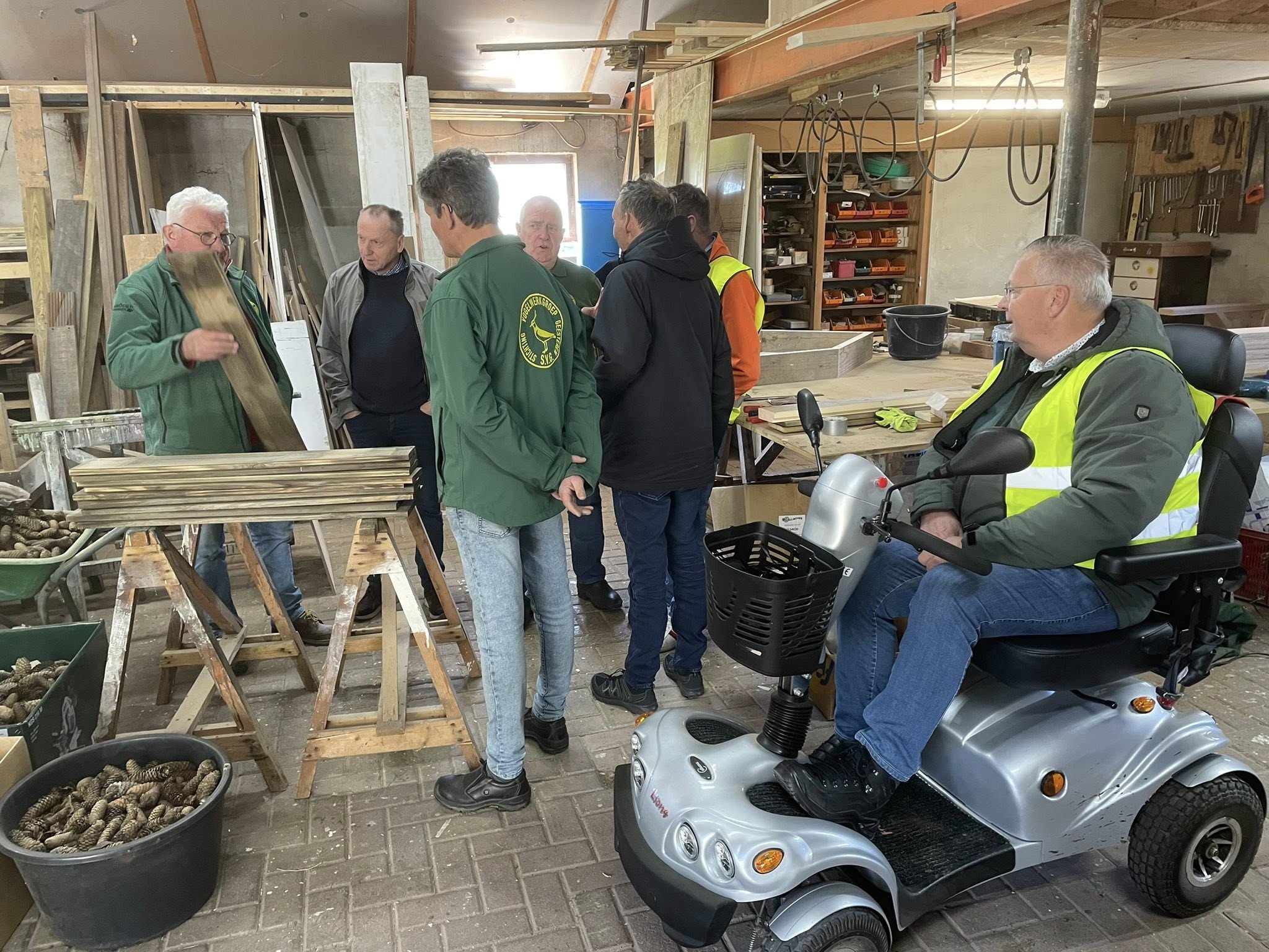 De groep Samen Op Pad bezocht woensdag de werkplaats van onze timmerploeg aan de Langeveenseweg. De groep met fietsdriewielers, scootmobiels, rolstoelen met handbikes en gewone fietsen is een initiatief van de stichting Welzijn Tubbergen Dinkelland. De deelnemers toeren regelmatig door de dorpen van de gemeente Tubbergen.