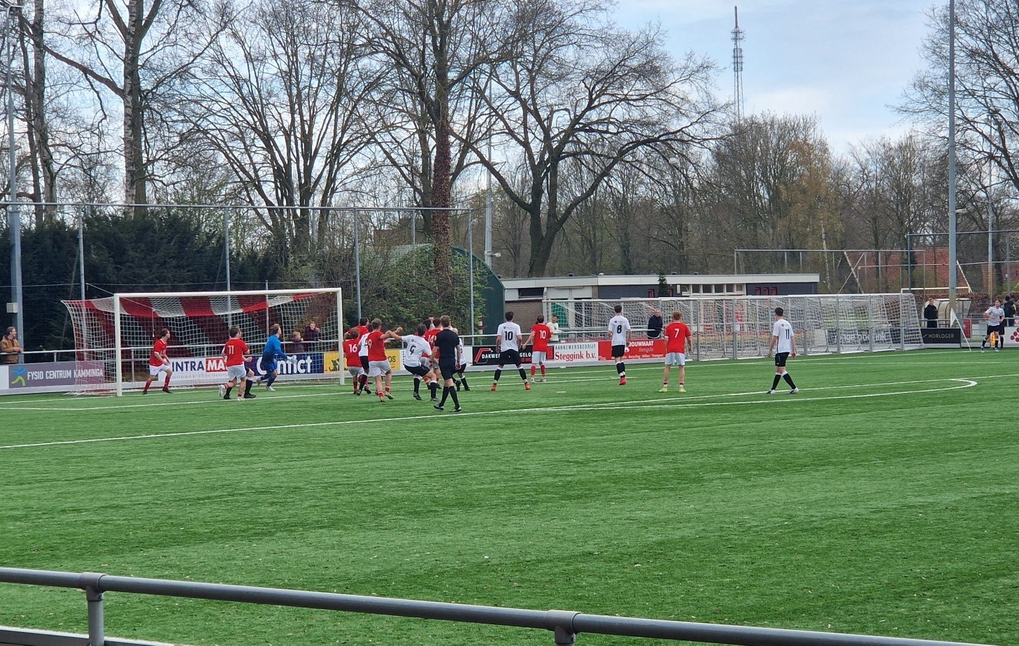 De eerste selectie van STEVO heeft op Paaszaterdag een belangrijke 1-2 overwinning behaald op Achilles’12 in Hengelo. Ondanks het feit dat de thuisploeg al vroeg met tien man kwam te staan, bleef het duel onnodig spannend tot het laatste fluitsignaal. Gezien de kansenverhouding had de uitslag aanzienlijk hoger moeten uitvallen in het voordeel van de ploeg uit Geesteren. STEVO begon sterk en creëerde al in de openingsfase meerdere grote kansen. Nog vóór de rode kaart voor Achilles’12, na een kwartier spelen, had de score al geopend moeten worden. In de afronding ontbrak het echter aan scherpte bij de voorwaartsen, waardoor een comfortabele voorsprong uitbleef. In de 25e minuut viel dan toch de verdiende openingstreffer. Na een goede actie van Pim Kroeze werd Roy Wigger in stelling gebracht, die beheerst de 0-1 binnenschoot in de verre hoek. STEVO bleef vervolgens domineren en kreeg volop mogelijkheden om de voorsprong uit te breiden, maar slaagde er niet in om het overwicht ook in doelpunten uit te drukken. Met een magere 0-1 voorsprong werd de rust bereikt, een stand die geen recht deed aan het spelbeeld.